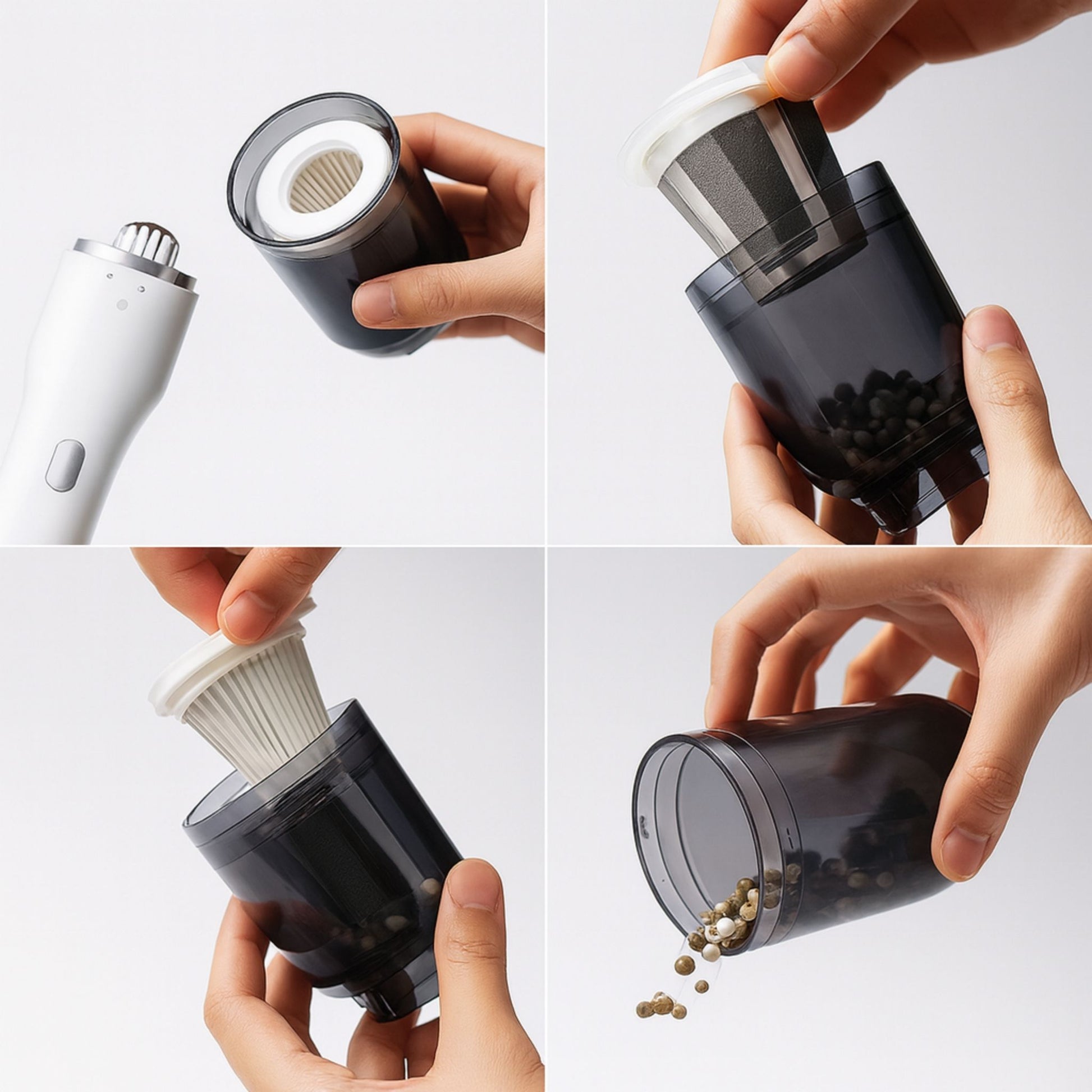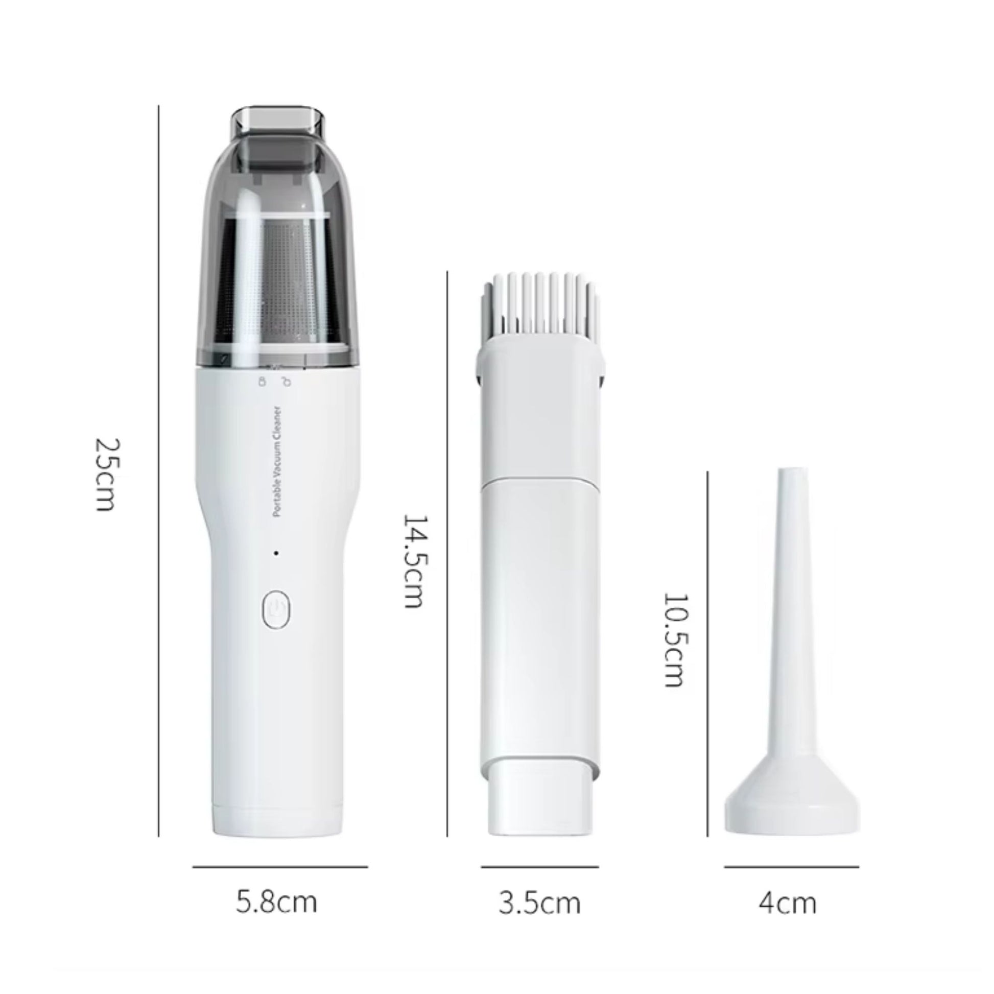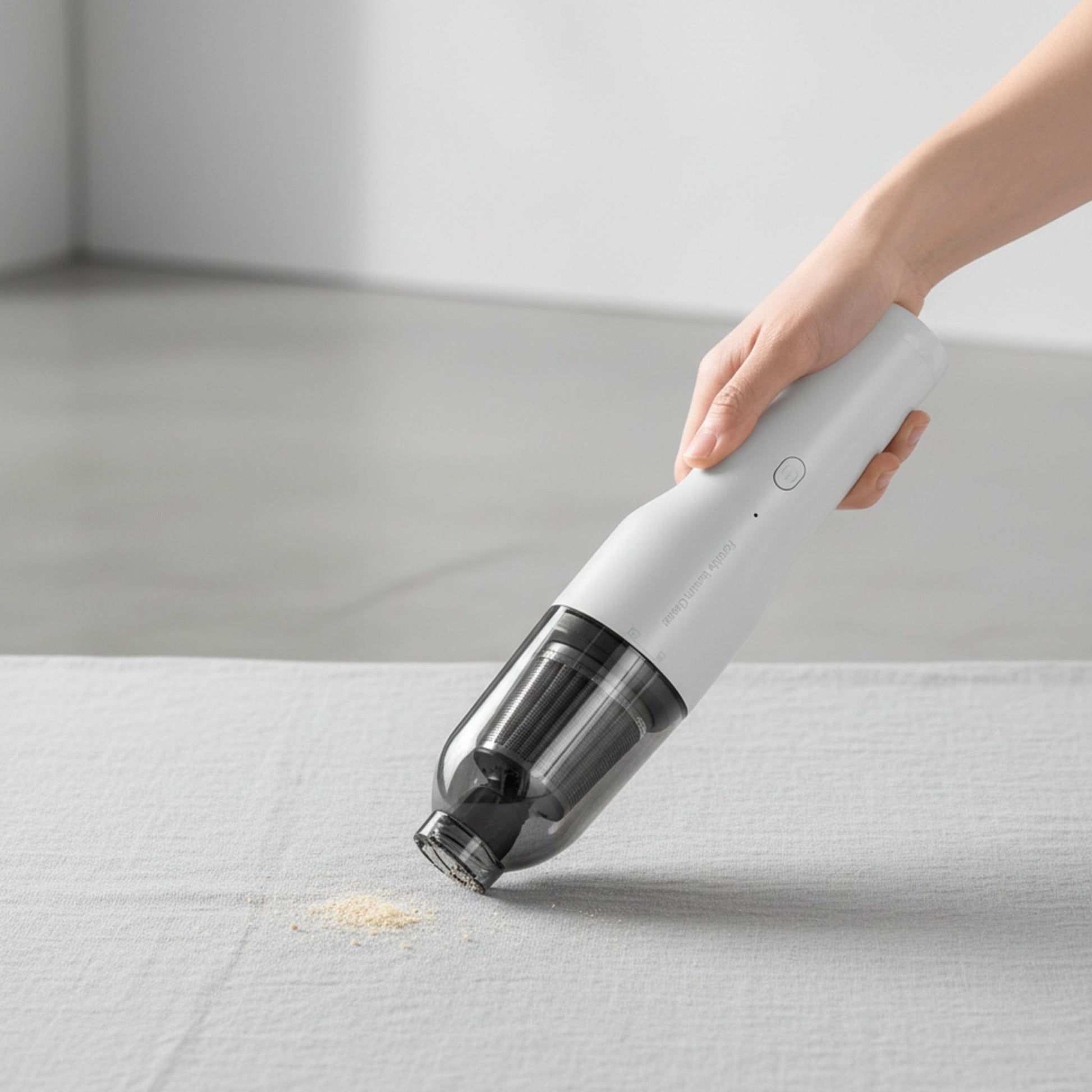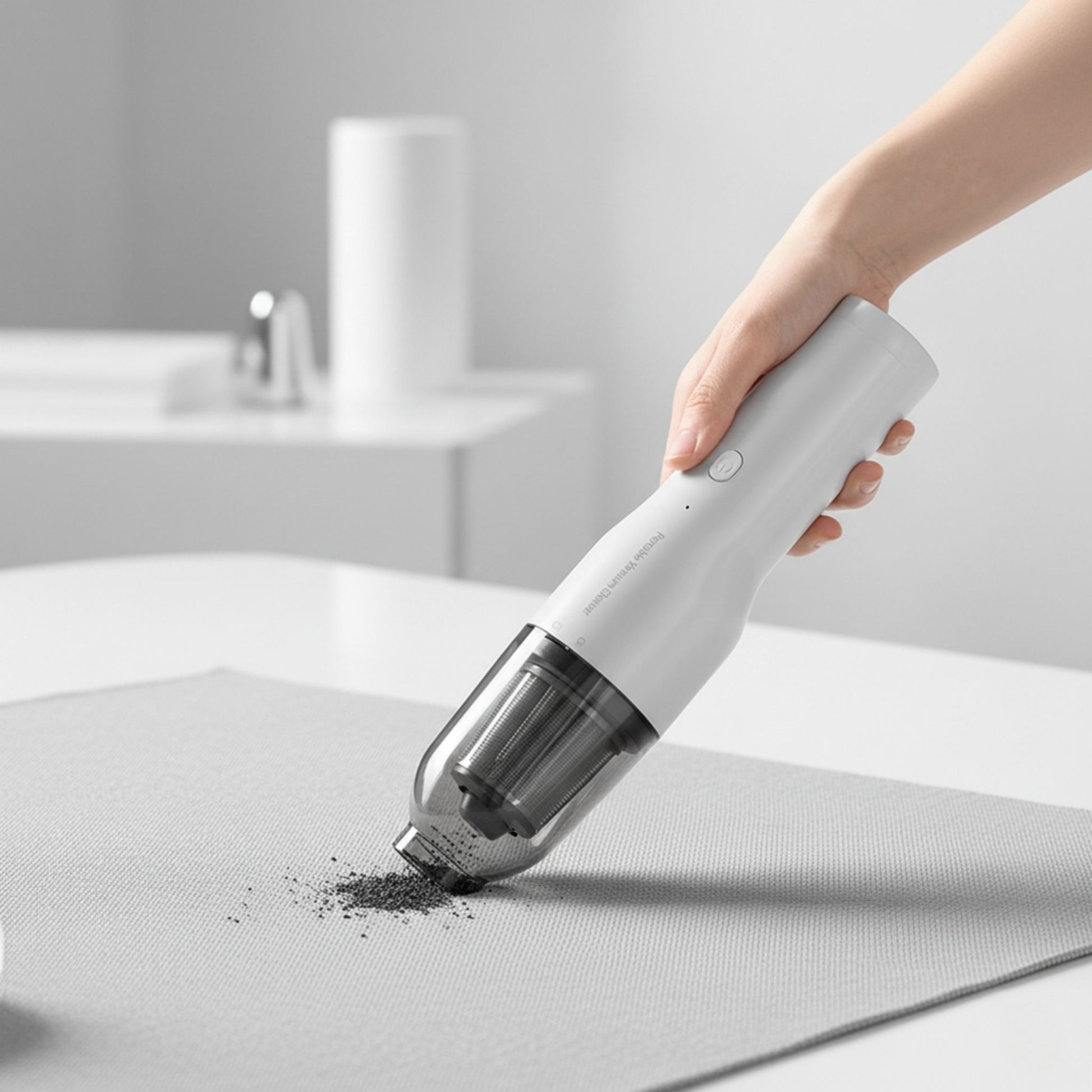 Przenośny odkurzacz akumulatorowy zaprojektowany z myślą o codziennych, drobnych porządkach. Dzięki kompaktowym rozmiarom i bezprzewodowej konstrukcji idealnie sprawdza się w samochodzie, biurze, kuchni oraz podczas szybkiego sprzątania trudno dostępnych miejsc.