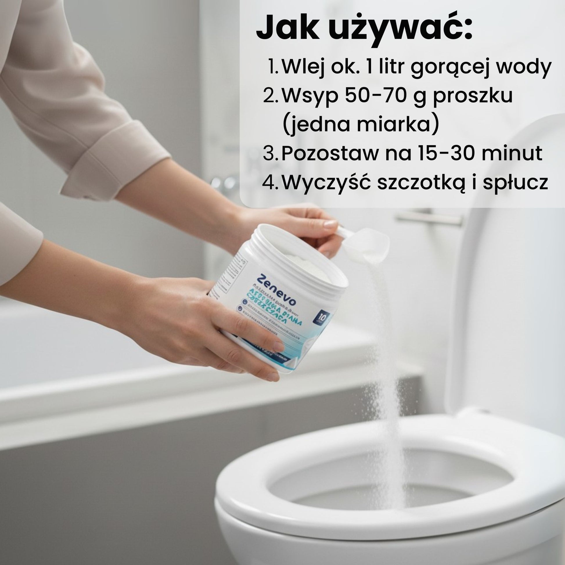 To nie jest kolejny żel w butelce. Zenevo to unikalny proszek z technologią aktywnej piany, który zmienia wszystko, co myślałaś o czyszczeniu toalety.