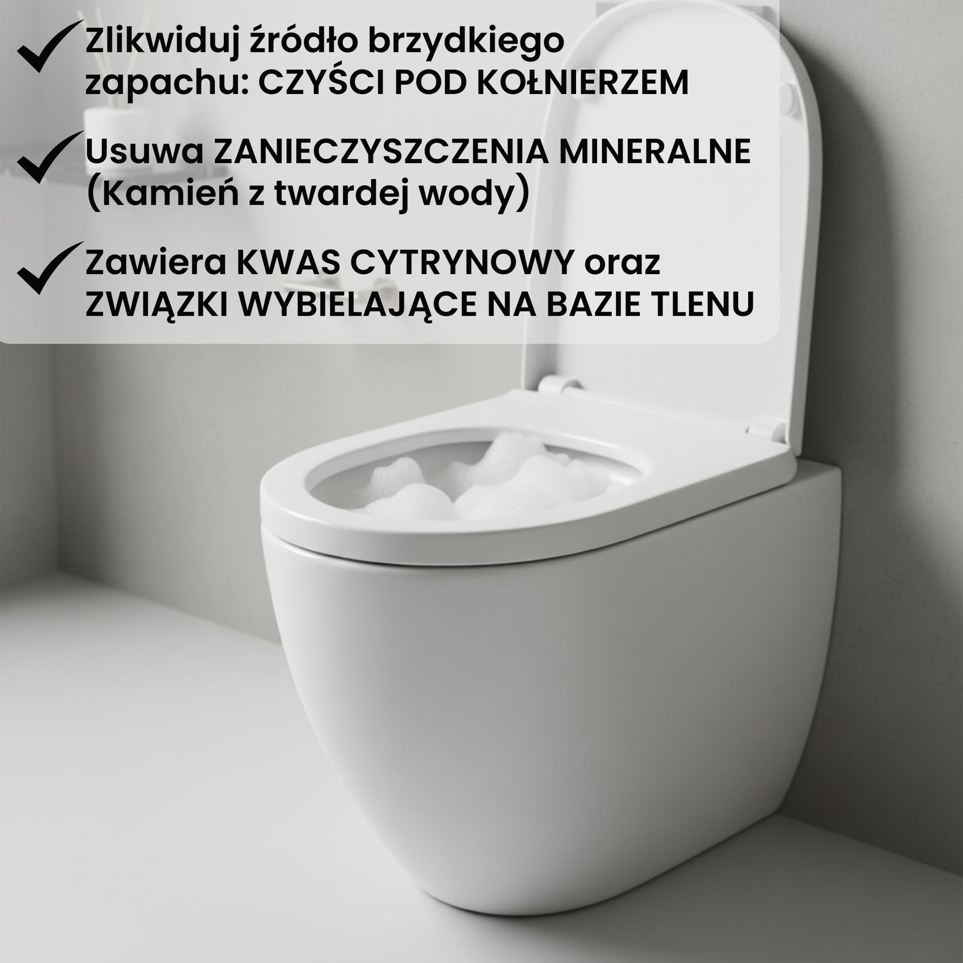 Po kontakcie z wodą tworzy gęstą, pracującą pianę, która rośnie jak żywy organizm – dociera głęboko w kolano odpływowe, pod kołnierz, w każdą szczelinę, gdzie Twoja szczotka nigdy nie sięgnie.